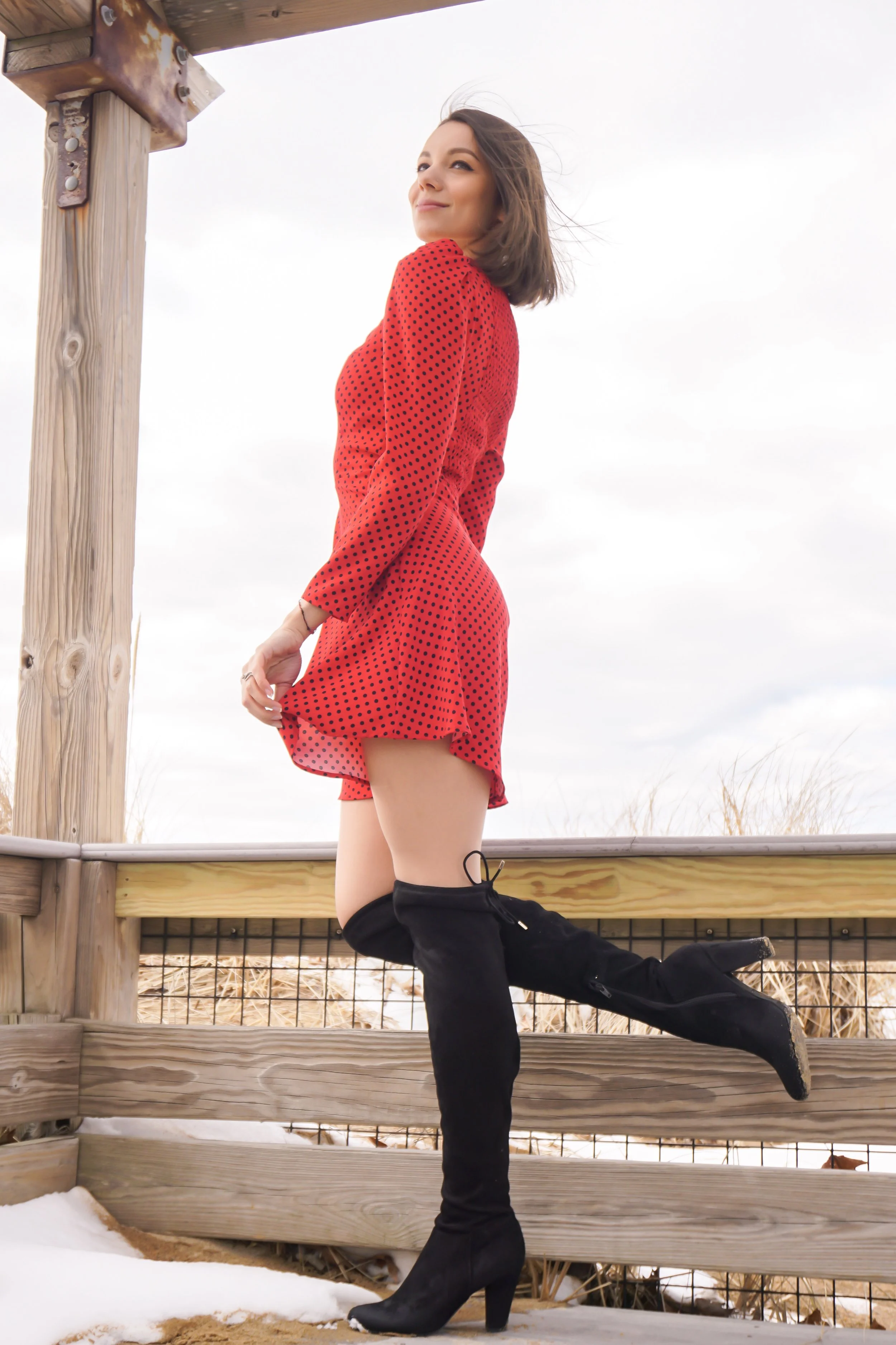Product Name: Red dress and knee high boots online