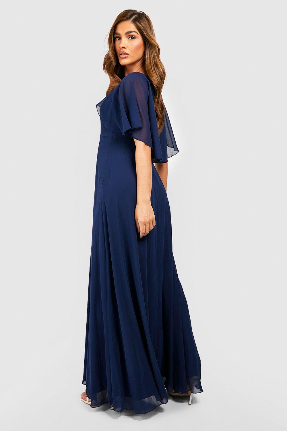 Product Name: Cape sleeve high slit plain chiffon maxi dress online